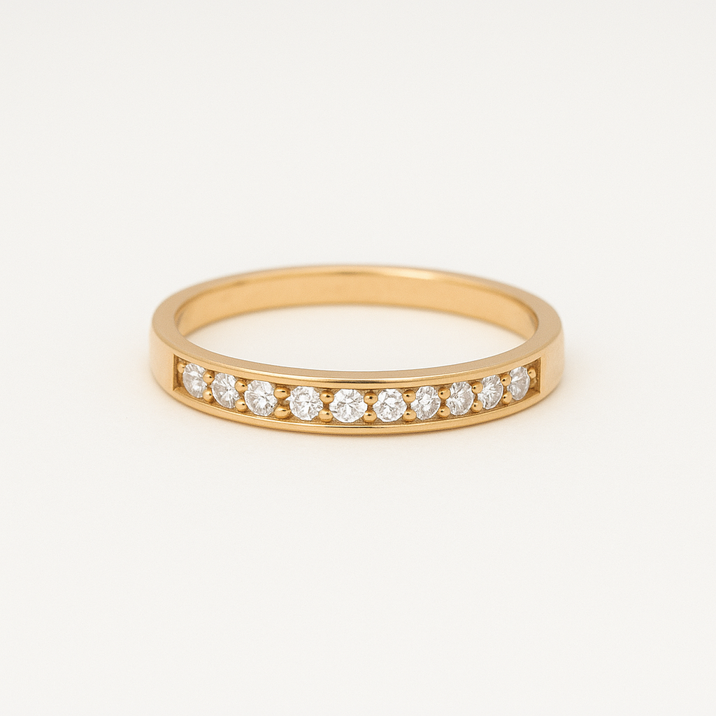 Anillo nacional de oro 18k modelo medio cintillo riel con circones.