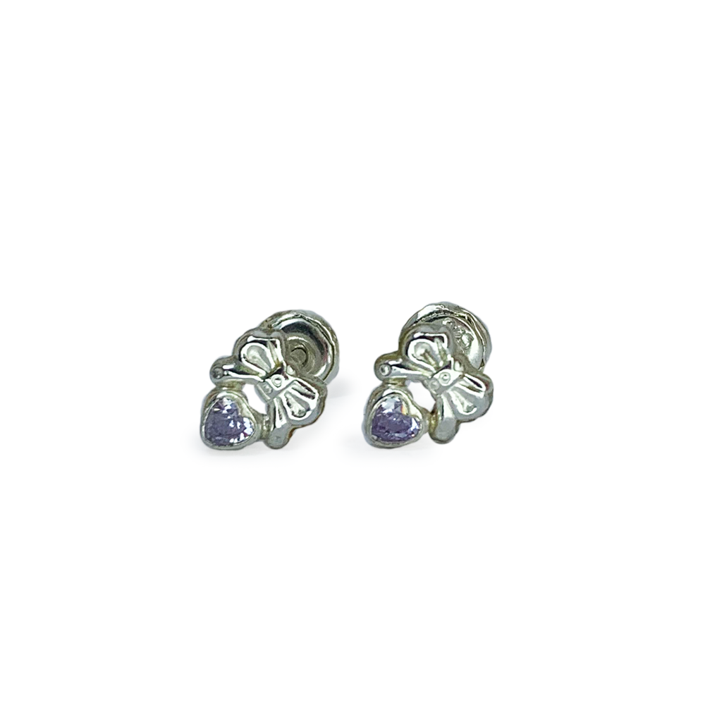 Aro de plata modelo infantil cinta color lila , con tornillo tope .