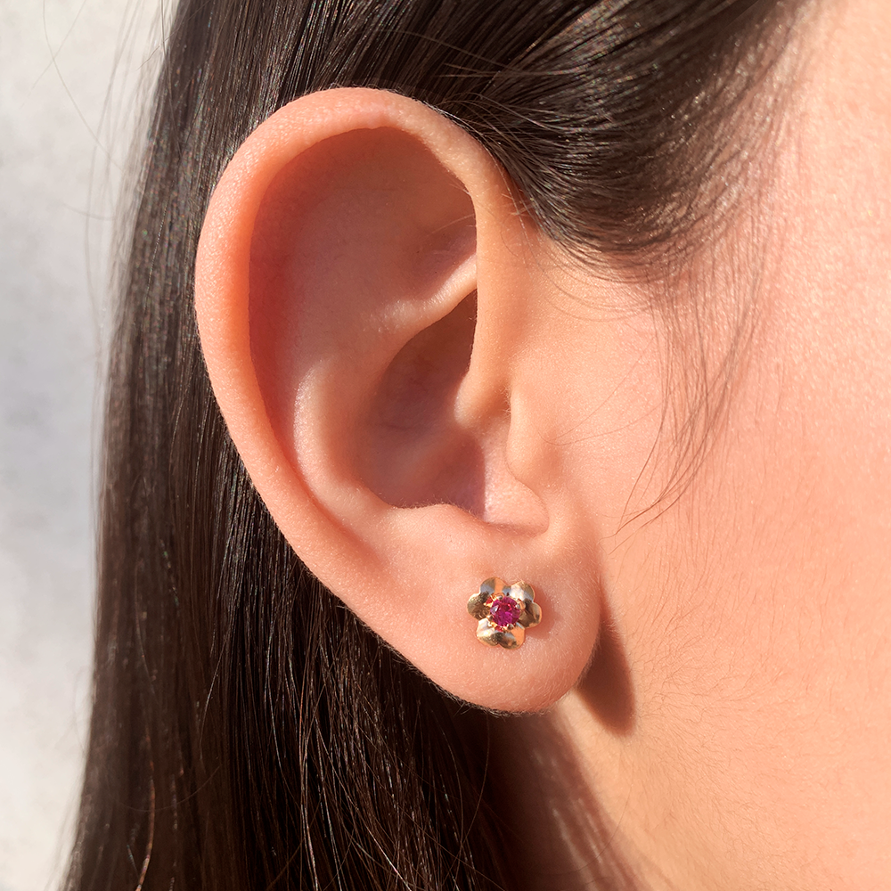 Aros oro 18k atornillados sin tope , tamaño flor 6mm aprox. Aros de oro flor . https://modaslillo.cl/categoria-producto/aros-abridores/