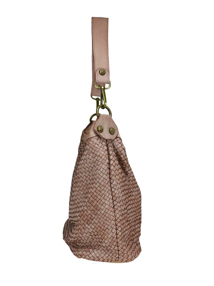 Bolso de tamaño mediano y diseño trenzado elaborado en piel bovina.