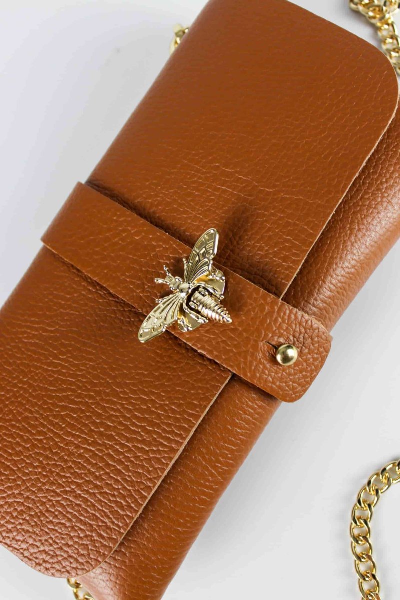 El bolso de mano y bandolera Bee es práctico y cabe justo lo que necesitas, además, dispone de asa larga de cadena, que te permite llevarlo cruzado o al hombro, es extraíble para poder quitarla.
