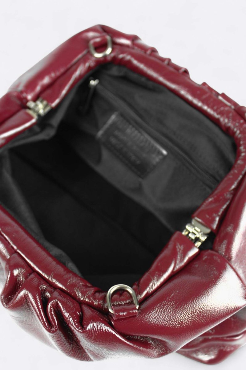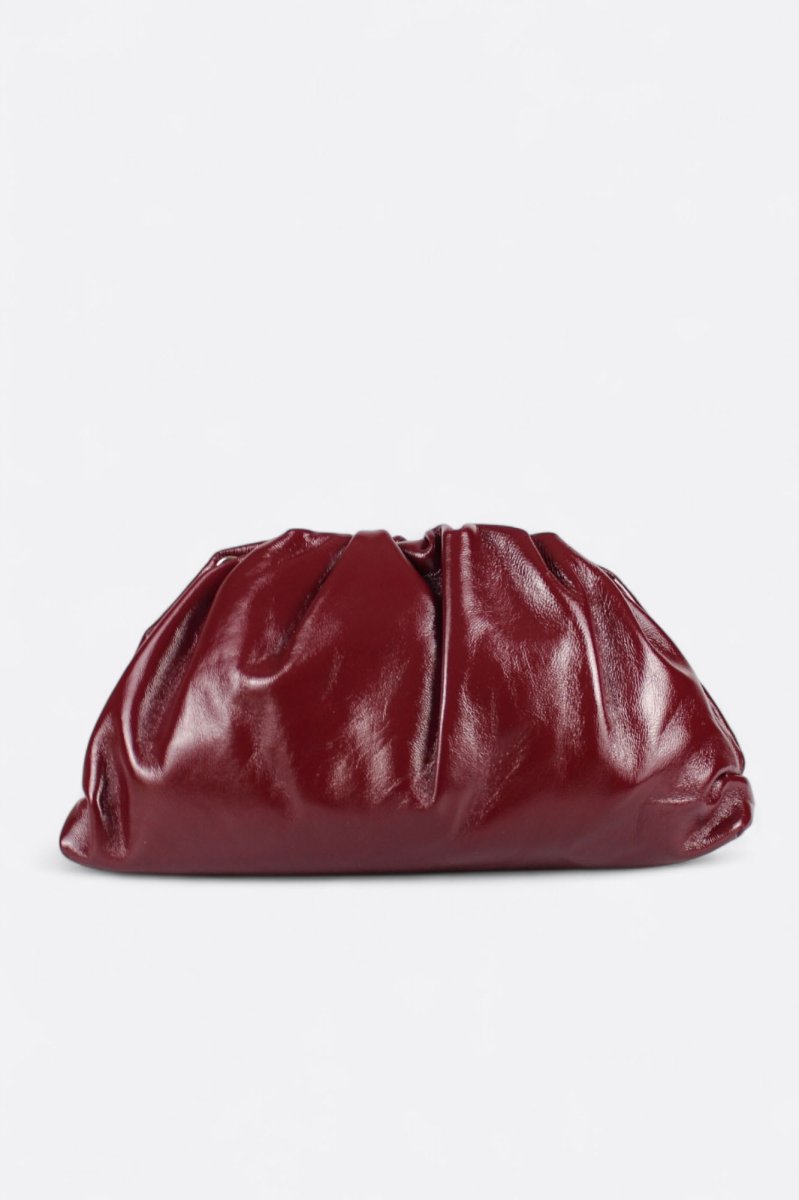 ¿Es un bolso o es una declaración de intenciones? Este diseño tipo pouch en piel con acabado lacado es para quienes saben que el brillo no es solo para la noche. Su acabado lacado y su textura arrugada le dan ese aire sofisticado, y el resultado es un look de editora de moda.