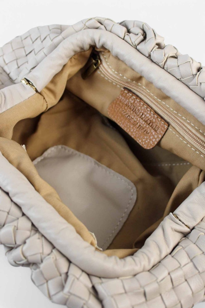 No podemos estar más contentas en Monaur de traeros directamente de Florencia, esta maravilla de bolso de mano de piel trenzada totalmente artesanal.