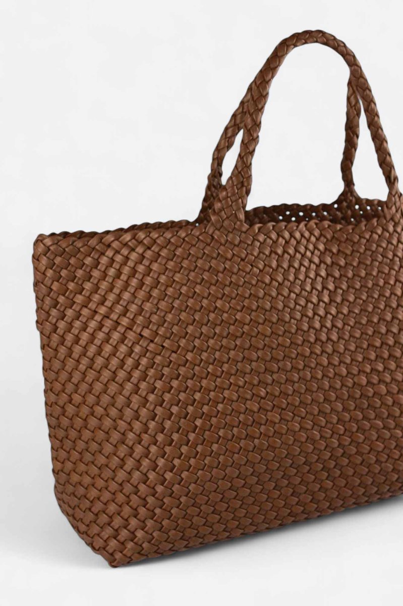 Si tenemos que destacar un bolso trenzado que obsesionará a las expertas en moda esta temporada, ese es nuestro bolso tote trenzado de piel MIRELLA, porque hace que cualquier look parezca de lujo.