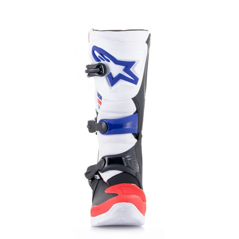 La última innovación de la marca líder en botas Alpinestars para motocross y enduro lanza al mercado las nuevas BOTAS ALPINESTARS TECH 3 BLANCO ROJO AZUL. Incorporan tecnologías probadas en circuitos en un calzado anatómicamente perfilado que incorpora protecciones y confort.