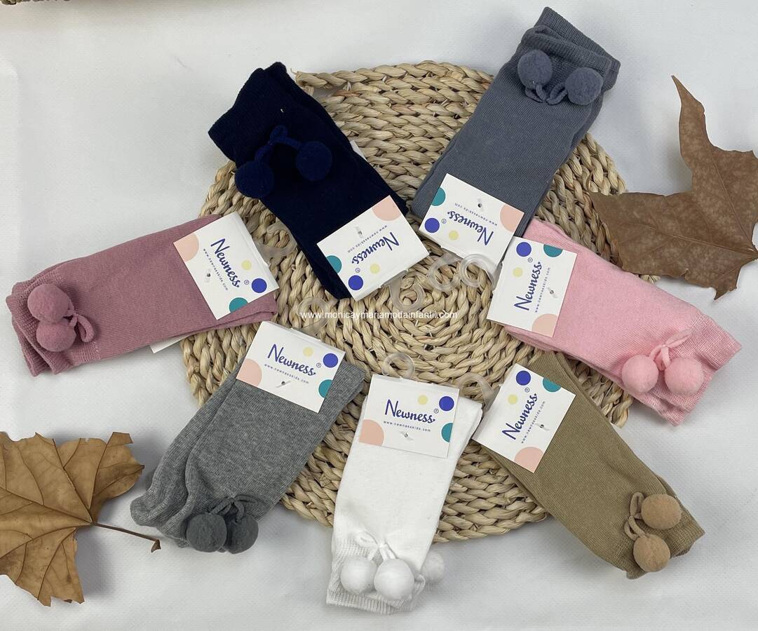 Calcetin Alto Pompones Gris Claro