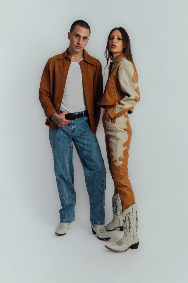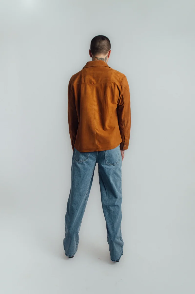 Camisa de cuero clásica en piel de ante color miel.