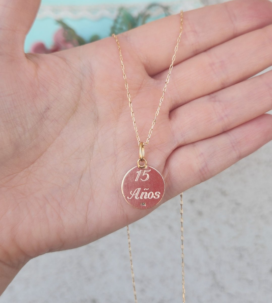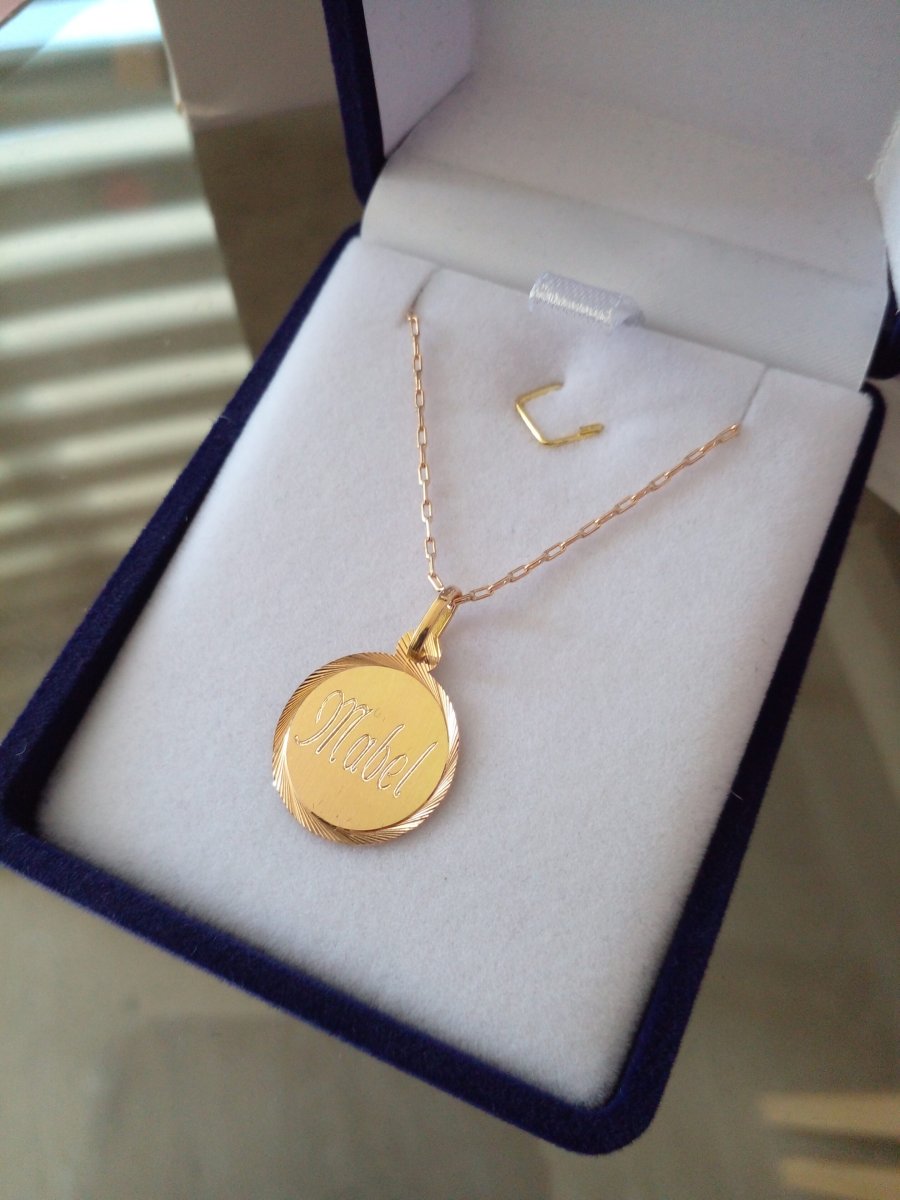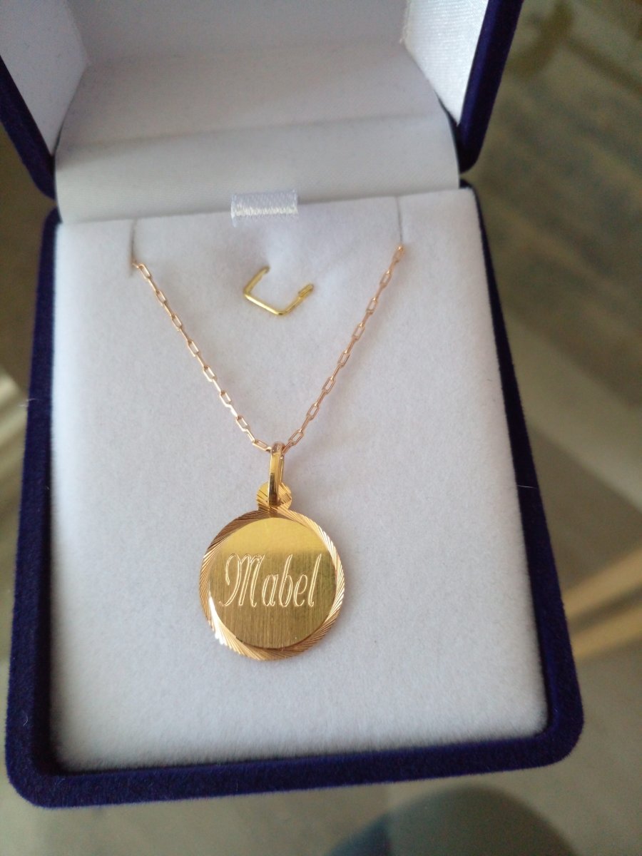 Collar oro 18k medalla disco. https://modaslillo.cl/shop/collar-letra-b-oro-amarillo-18k/