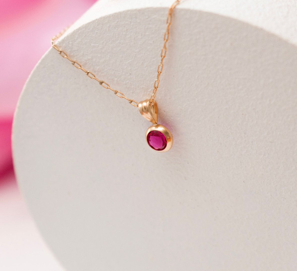 Collar oro 18k punto de luz rubí. https://modaslillo.cl/categoria-producto/cadenas/