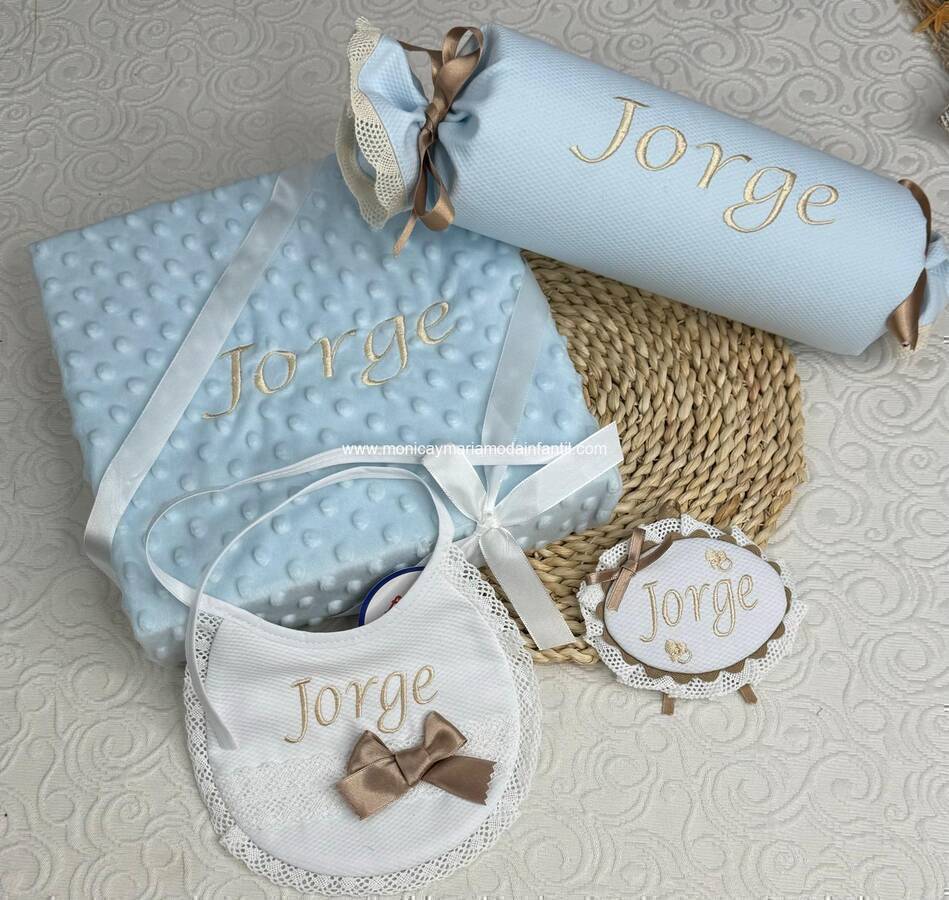 Color cojin antivuelco rosa, celeste, beige, blanco.