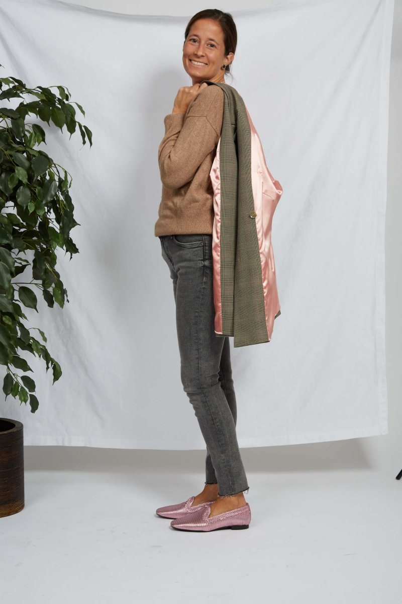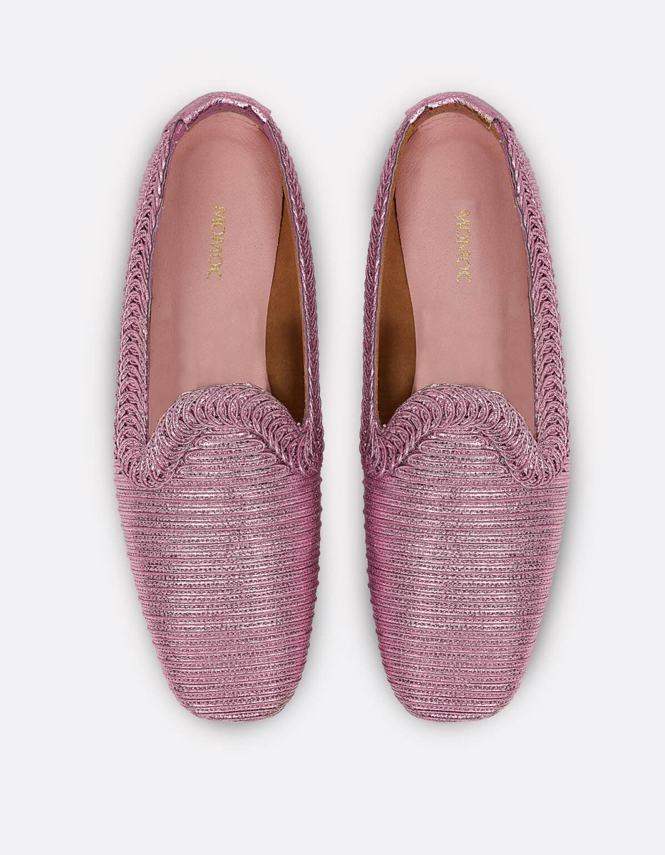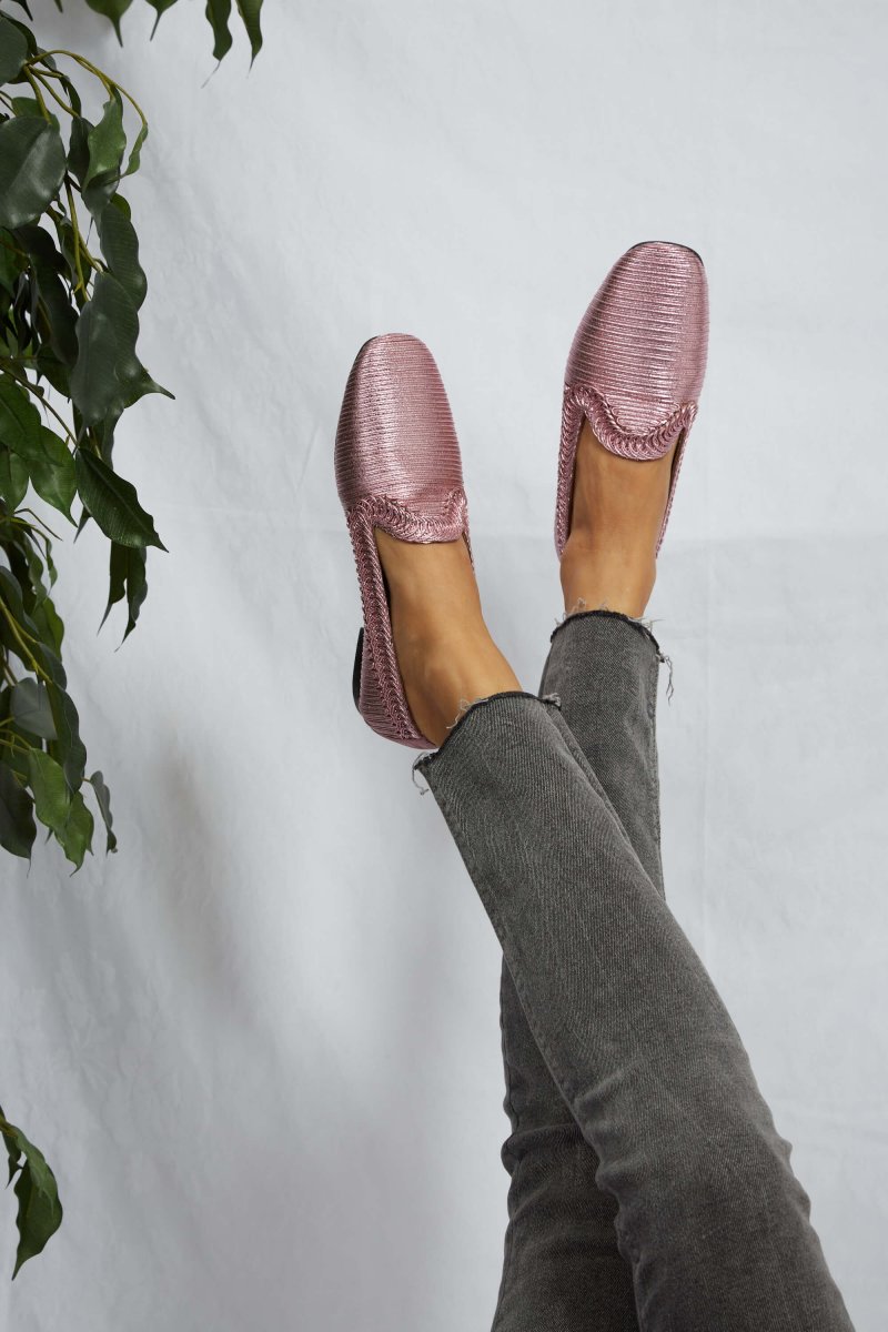 We’re excited to introduce this gorgeous pink metallic loafer! The circular trim adds a sophisticated and original touch. It’s also made without wasting any material, true to our zero -waste principle.