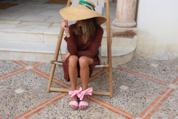 The organic cotton straps are tied in a bow or around the ankle, whichever you prefer!
