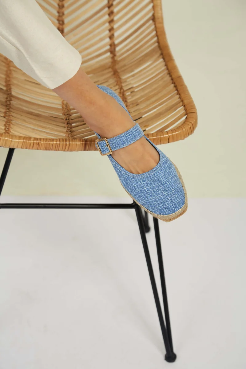These ballet flats are inspired by the beautiful towns of Spain . These soft, blue ballet flats with jute soles are perfect . A must-have for spring.